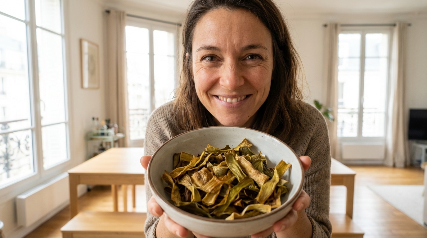 C’est l’apéro le plus surprenant que j’ai servi : des chips de feuilles de poireau… et tout le monde en redemande
