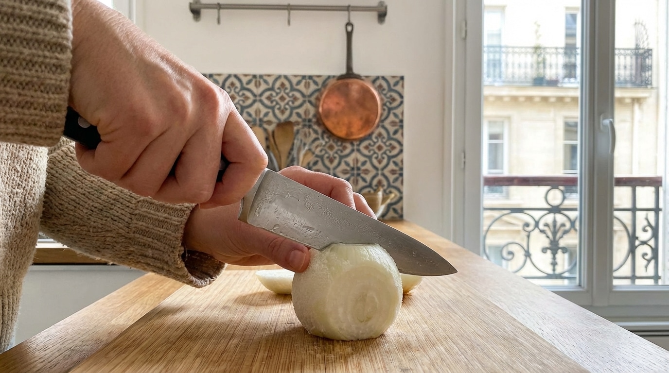Mes yeux ne pleurent plus jamais quand je coupe un oignon : le geste secret des chefs que j’aurais aimé connaître plus tôt