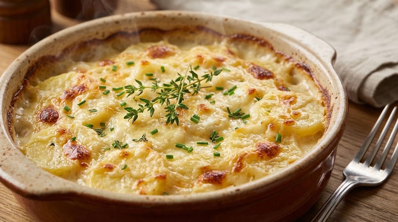 Ce gratin pommes de terre-chèvre crémeux se prépare en moins de 10 minutes et fait fondre toute la famille !