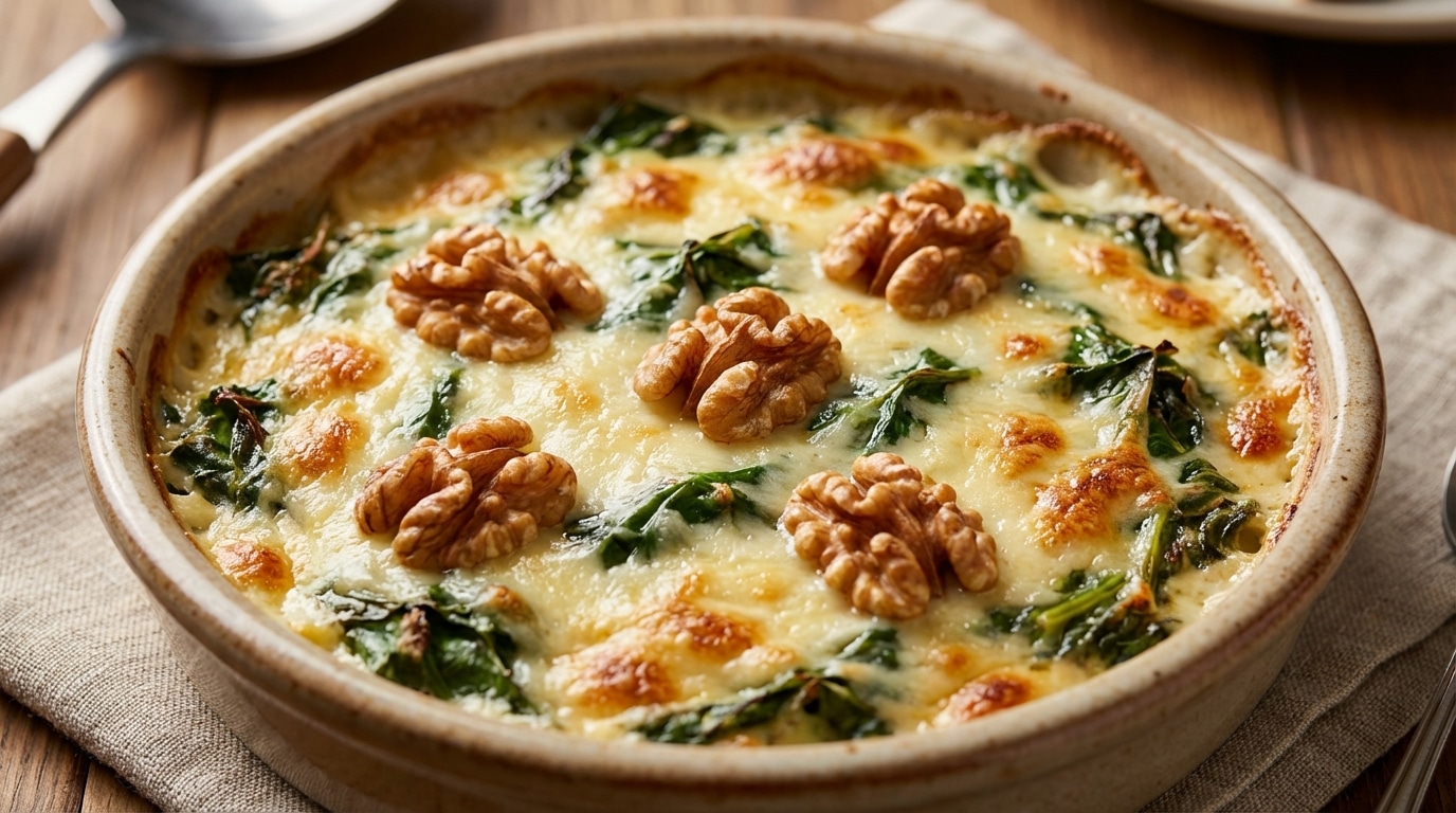 « Ce gratin blette-ricotta-noix au four m’a réconciliée avec ce légume oublié : texture fondante, saveurs rustiques et préparation ultra facile