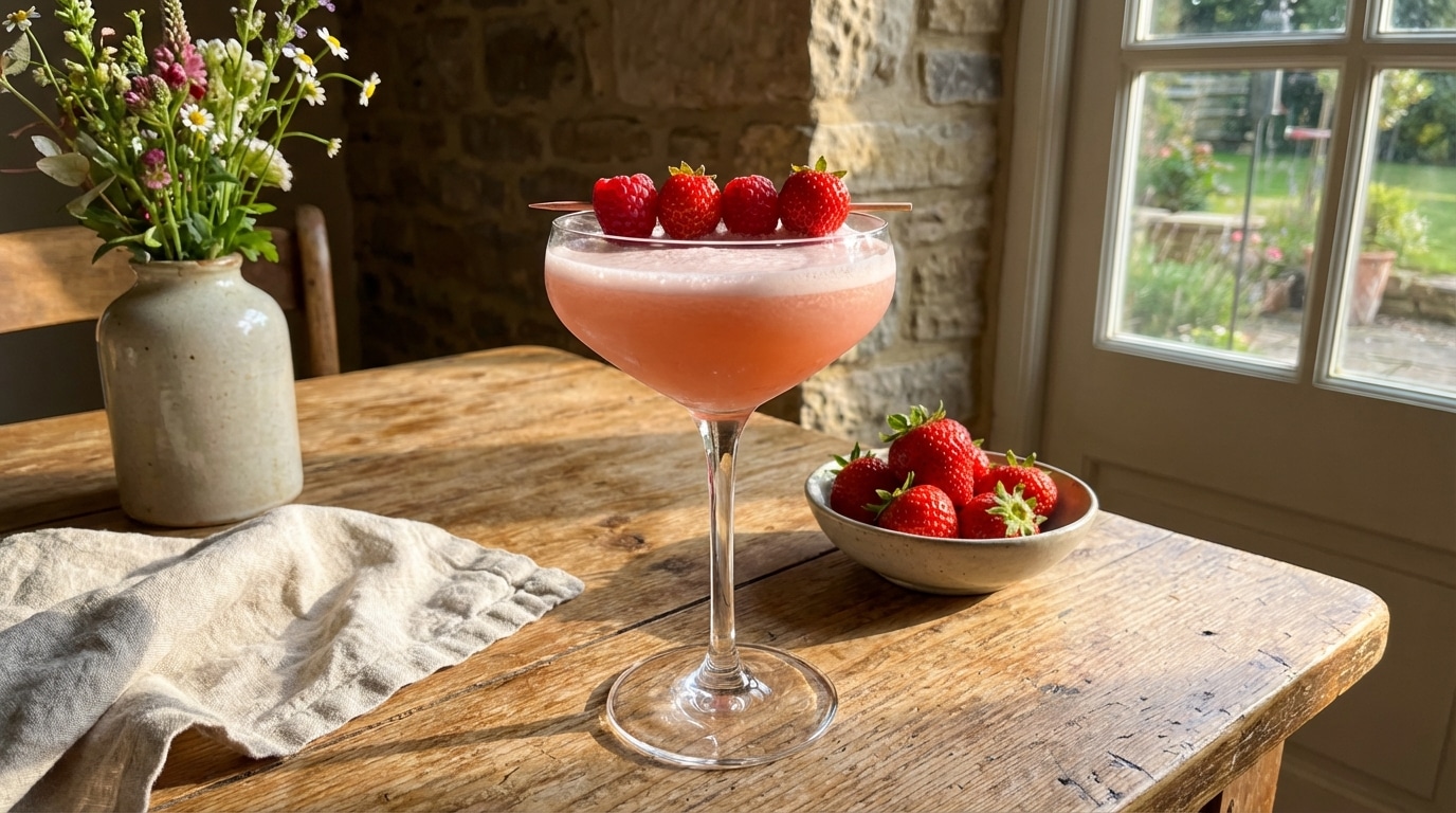 Un jour, un cocktail Love Martini : harmonie fruitée de vodka, fraises fraîches et champagne rosé pour soirée passion