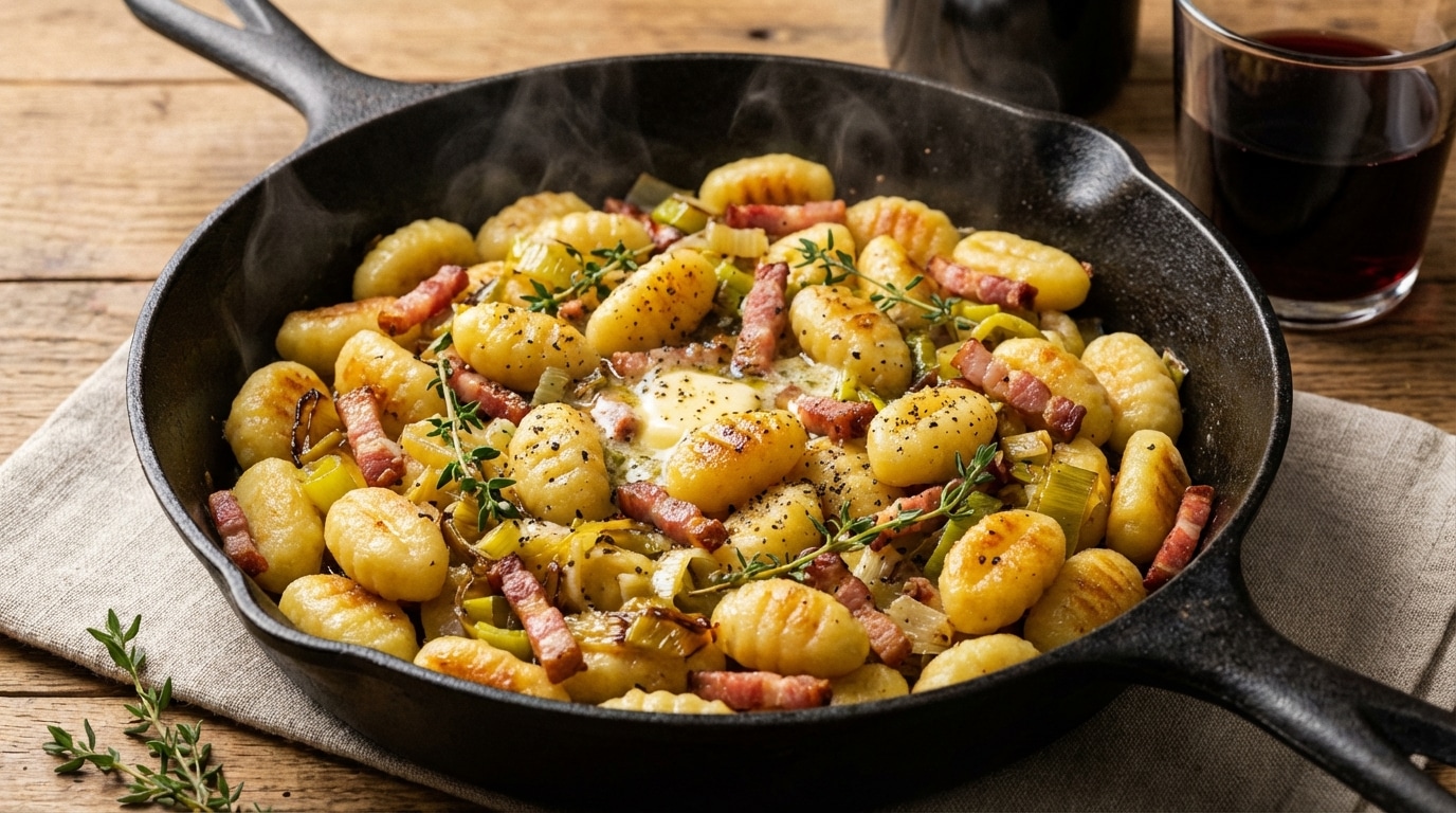 Lorsque les températures chutent et que la grisaille de février s’installe, l’appel d’un dîner réconfortant devient presque vital. On rêve de textures fondantes, de saveurs généreuses et d’une chaleur enveloppante qui fait oublier le froid extérieur. Pourtant, après une longue journée, l’idée de passer des heures derrière les fourneaux semble souvent insurmontable. C’est ici que la magie de la cuisine hivernale opère : un plat peut être à la fois incroyablement gourmand et prêt en un clin d’œil. Imaginez des gnocchis dorés à souhait, une crème onctueuse qui nappe délicatement des poireaux tendres et le parfum irrésistible du lard fumé qui embaume la cuisine. Cette poêlée express incarne la promesse d’un bonheur simple et immédiat, transformant un soir de semaine ordinaire en un véritable moment de plaisir gustatif, sans effort et avec une satisfaction maximale pour les papilles.