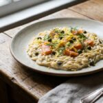 En préparation, la garniture se fait à l’avance et se garde au frais, puis le montage se fait juste avant d’enfourner : le fond reste plus sec et la pâte plus croustillante. Un réchauffage se fait au four, jamais au micro-ondes, pour conserver le gratiné.