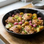 Ce minutage implacable de vingt minutes chrono, balançant harmonieusement entre l’attaque initiale au feu et la touche finale rayonnante au four, bloque catégoriquement toute fuite indésirable. Le plat exhibe alors fièrement une onctuosité liée et charnue, qui surprendra durablement vos hôtes. Les grandes tablées se régaleront d’un véritable moment de gourmandise pure et sans compromis, à attaquer joyeusement sans plus patienter.