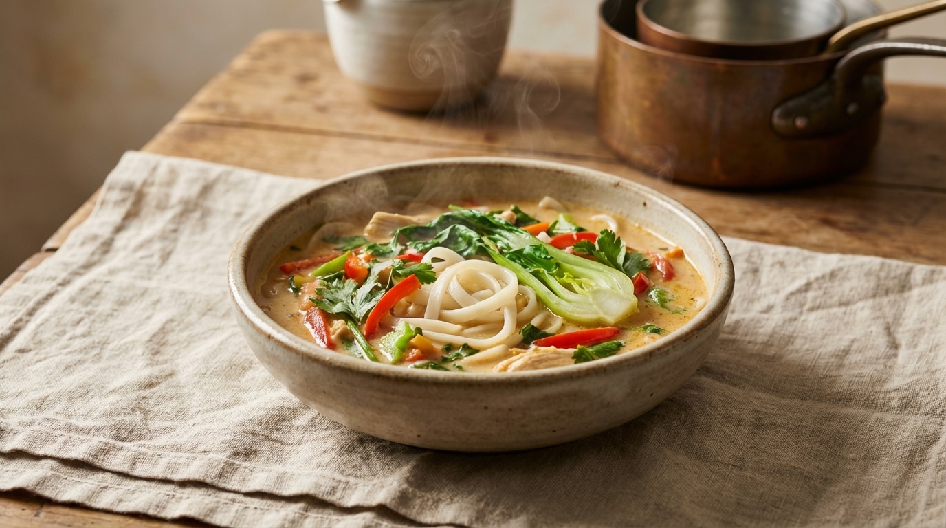 Alors que le mois de mars s’installe timidement, oscillant entre les ultimes frimas de l’hiver et les premières promesses printanières, l’envie d’évasion se fait sentir dans nos assiettes. C’est le moment idéal pour convoquer les parfums enivrants de l’Asie du Sud-Est, là où la chaleur du piment rencontre la douceur enveloppante du lait de coco. Cette période de transition appelle des plats réconfortants mais légers, capables de réveiller les papilles engourdies tout en apportant une dose de chaleur bienfaisante. Imaginez un bol fumant aux effluves citronnés, une onctuosité rassurante et le croquant végétal qui annonce le renouveau de la nature. Nul besoin de parcourir des milliers de kilomètres ni de passer des heures aux fourneaux pour s’offrir ce plaisir : la magie opère par l’assemblage de saveurs vives et contrastées, transformant un simple dîner de semaine en une véritable escale gourmande en Thaïlande.