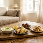 Pour la finition, ajouter un filet d’huile d’olive pour la brillance, une pointe de fleur de sel et, selon l’envie, miel, noix, graines, herbes ou paprika. Quelques pousses donnent tout de suite un air de plateau de réception. Miser sur une touche croquante et une note parfumée pour signer l’ensemble.