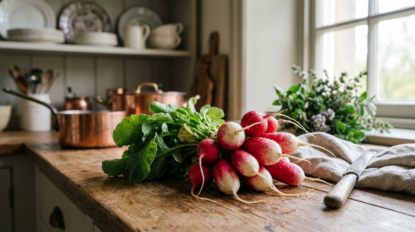 La scène de retour de notre marché local, panier rempli de superbes bottes de radis printaniers, est d’une grande banalité. Comme un réflexe conditionné par des années d’habitudes culinaires bien ancrées, le couteau s’abat sur la planche à découper et les fanes verdoyantes volent directement vers la poubelle, ou dans le meilleur des cas, sur le tas de compost. Le légume croquant est sauvé, mais la verdure est sacrifiée sans le moindre regret. Et si ce geste automatique, répété inlassablement au fil des ans, nous faisait passer à côté d’une richesse gastronomique totalement insoupçonnée ? En cette douce période où le printemps s’installe, les étals regorgent de ces petits bulbes roses et de leurs longues feuilles frémissantes. Aborder la cuisine sous l’angle du zéro déchet permet de remettre en question ces vieux automatismes et d’explorer des pistes savoureuses, économiques et profondément respectueuses de l’environnement.