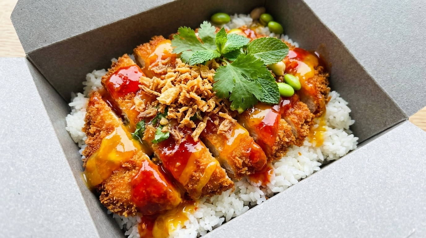 Le succès du bol “crousty” tient à une idée limpide : **riz moelleux**, **poulet pané croustillant**, puis une sauce qui fait le lien. Sur les réseaux en 2026, ce format cartonne parce qu’il se dresse comme au comptoir, se nappe généreusement et se décline à l’infini, tout en gardant cette sensation “enseigne” qu’on reconnaît au premier coup de fourchette.
