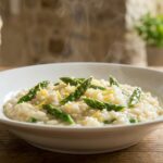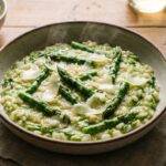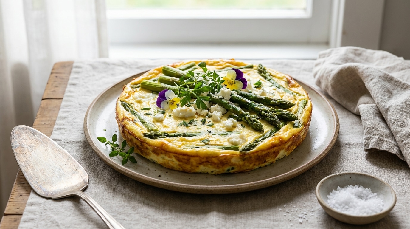 Au début du printemps, quand les asperges débarquent sur les étals, l’envie de plats dorés et fondants revient d’un coup. Un soir de semaine, une table dressée vite fait, un verre qui attend, et cette odeur de chèvre chaud qui se mêle à la muscade… difficile de résister. Ici, pas de pâte à étaler, pas de bords à pincer : juste des tronçons d’asperges encore bien verts, un chèvre frais émietté, et un appareil fluide versé comme une pluie crémeuse. Au four, tout gonfle, tout dore, et le plat se découpe en parts moelleuses, avec ce contraste si bon entre le végétal et le laitier. De quoi faire oublier, sans effort, les tartes classiques.