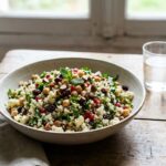 Le contraste se joue aussi ailleurs : une poignée de pistaches concassées apporte un croquant franc, et le citron réveille l’ensemble avec une pointe acidulée. La menthe, elle, doit rester présente mais pas dominante : mieux vaut beaucoup de parfum et peu d’amertume, avec des feuilles bien fraîches.
