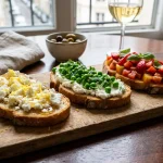 Un soir de printemps, la table basse se couvre de soleil : un grand plateau, des herbes fraîches, un parfum de citron qui claque, et cette promesse d’apéro qui fait parler tout le monde. Sans annonce, quatre bouchées arrivent, toutes différentes, toutes irrésistibles : du frais, du croustillant, du doré, du grillé. La première trempe dans une crème blanche ultra parfumée, la deuxième craque comme une viennoiserie salée, la troisième se picore en une seule bouchée bien juteuse, et la dernière se mange au doigt, encore tiède, avec un filet d’huile d’olive. Résultat : l’ambiance bascule, comme si la Grèce s’était invitée dans le salon. Et l’assiette se vide plus vite que prévu, entre rires et « mais tu as commandé où ? »