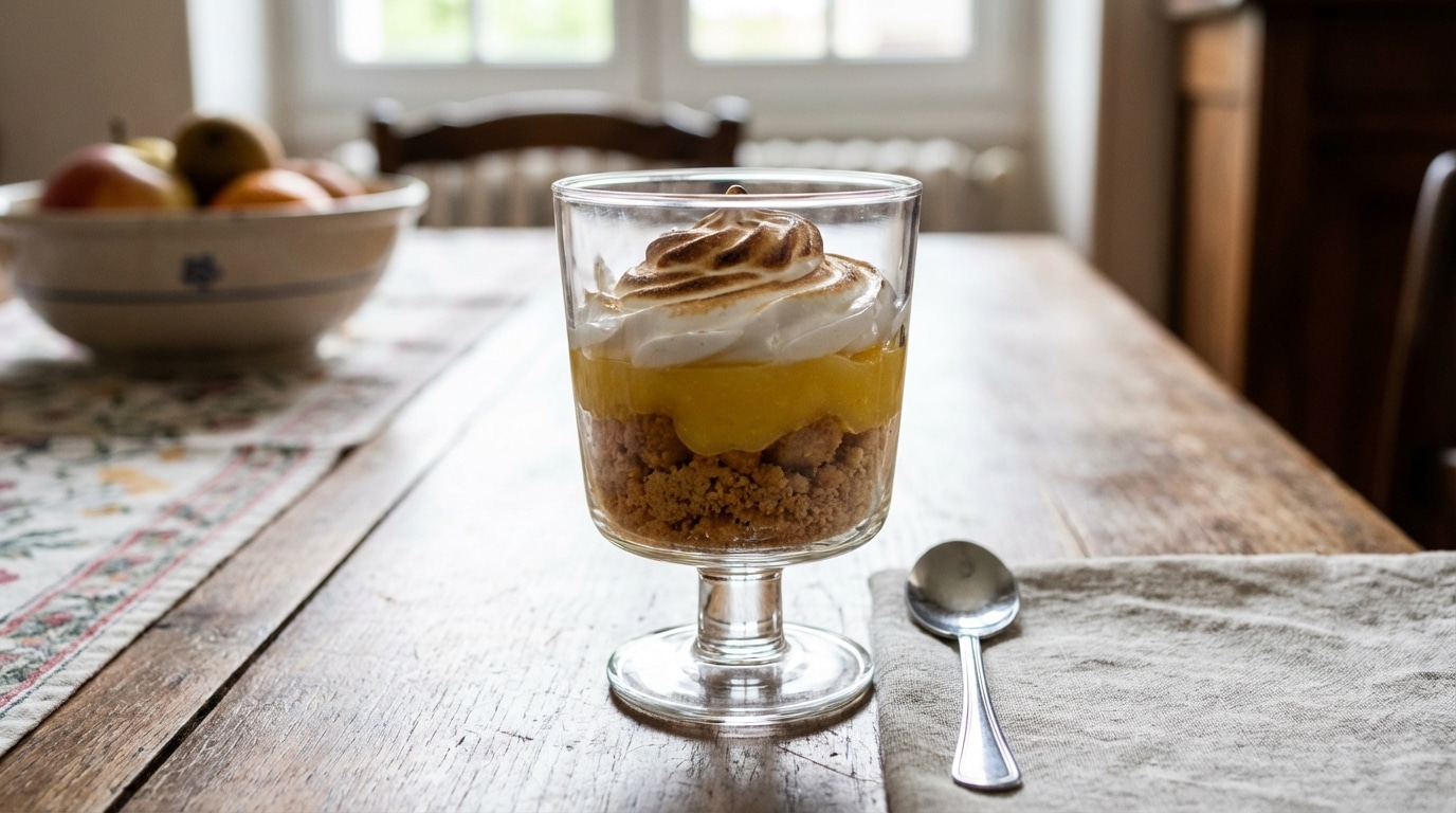 Au service, le contraste est roi : garder les verrines très fraîches et dorer la meringue au dernier moment. La cuillère rencontre alors le froid citronné et la chaleur légère du dessus caramélisé, et cette opposition rend chaque bouchée plus intense.