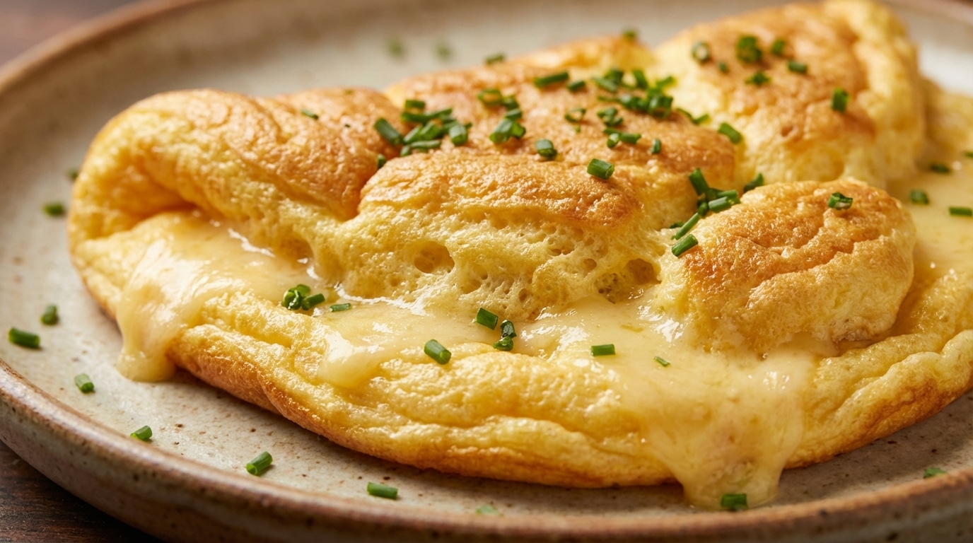 Vous pensez tout savoir sur l’omelette ? Testez cette version soufflée, moelleuse comme un nuage, parfumée au comté et à la ciboulette