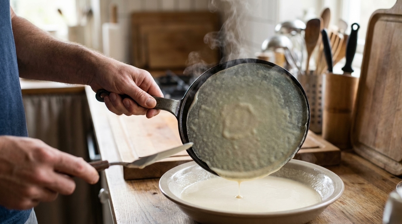 Nous sommes le 21 janvier 2026, l’hiver est bien installé et le ciel gris donne des envies irrésistibles de réconfort culinaire. À l’approche de la Chandeleur, une tradition s’impose dans tous les foyers : l’incontournable soirée crêpes. C’est toujours la même histoire : la première crêpe finit systématiquement en boule informe au fond de la poubelle, la deuxième est trop épaisse, et la cuisine finit par ressembler à un champ de bataille maculé de gouttes de pâte. Pourquoi s’obstiner à doser maladroitement à la louche et à tourner frénétiquement une poêle trop lourde, alors qu’un simple changement de perspective (et de matériel) permet de transformer une corvée technique en un jeu d’enfant infaillible ? Il est temps de remettre les pendules à l’heure côté fourneaux et d’adopter une méthode qui change tout.