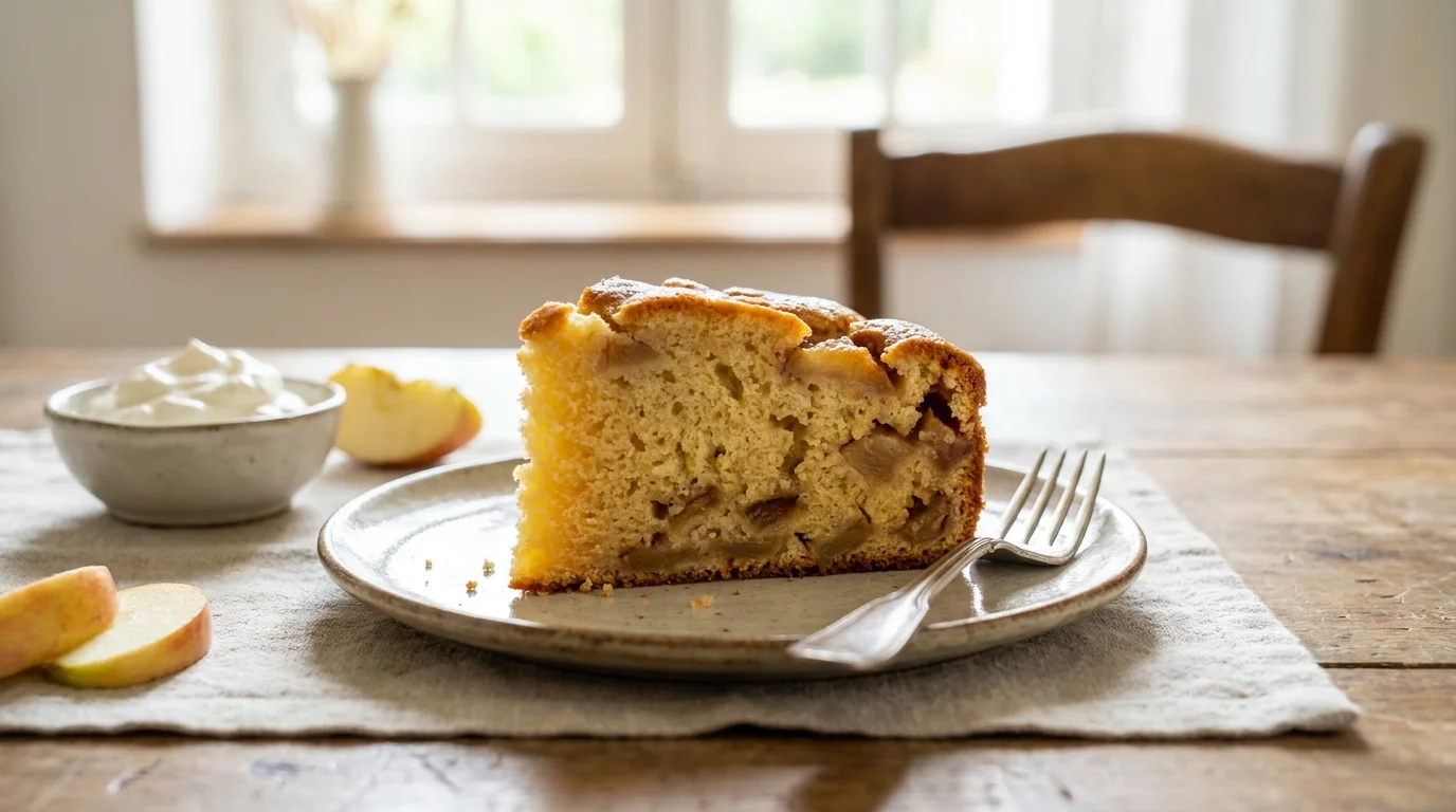 À la première bouchée, la différence se sent tout de suite : une mie moelleuse qui se tient, avec ce petit rebond irrésistible. Le gâteau aux pommes “classique” paraît soudain plus compact, plus sage, presque sec à côté.
