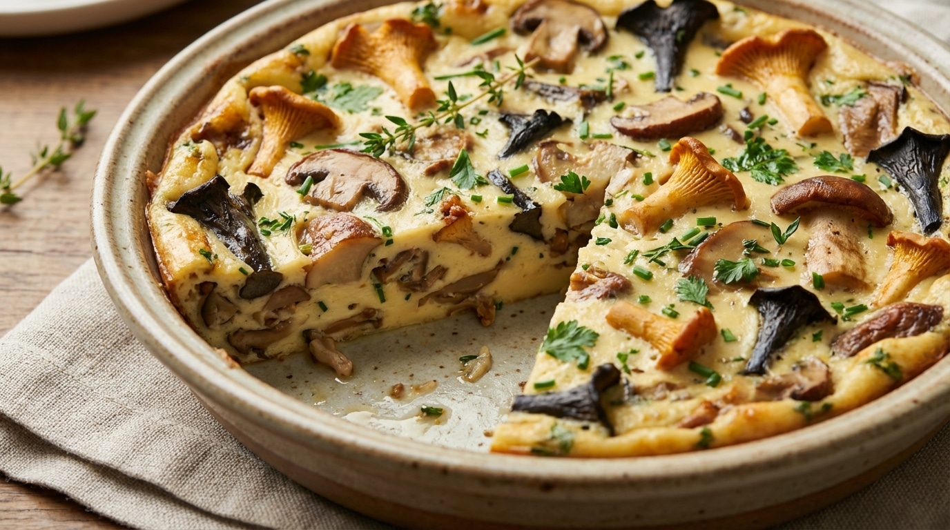 Pendant que la poêlée tiédit légèrement, la préparation de l’appareil à clafoutis demande un minimum d’effort pour un résultat maximal. Dans un grand saladier, battez des œufs avec un peu de farine jusqu’à obtenir une base lisse, puis incorporez progressivement le lait et la crème pour éviter les grumeaux. C’est à ce moment précis que la magie opère : mélangez cette base liquide avec les champignons émincés et les herbes fraîches ciselées. Versez ensuite le tout dans un plat beurré et faites cuire 30 minutes au four préchauffé à 180°C. Cette méthode simple garantit une texture ultra moelleuse, où chaque bouchée est parfaitement équilibrée.