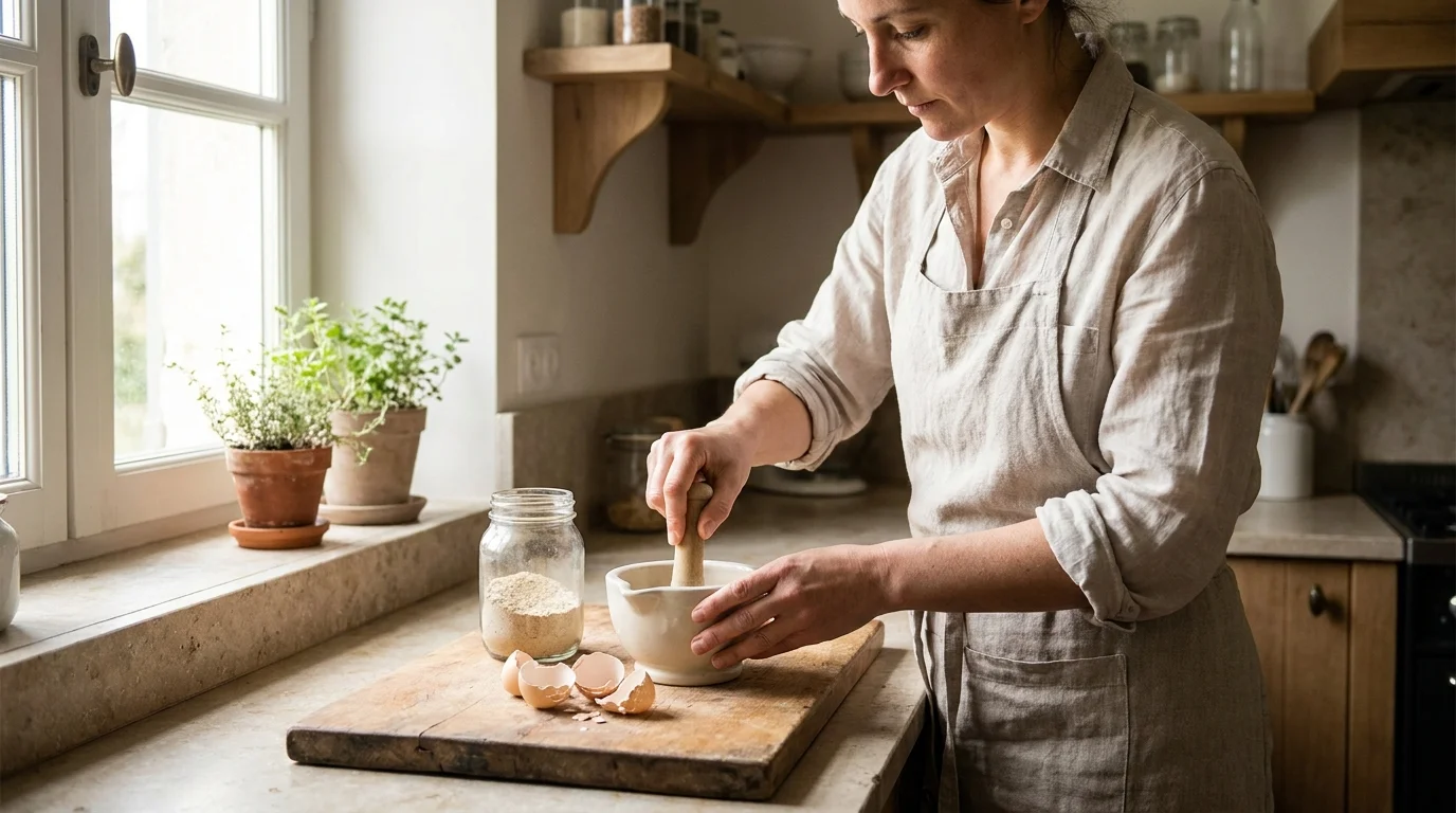 L’heure est venue de sortir des placards les mortiers traditionnels, les pilons robustes ou, pour les plus pressés, un simple moulin à café électrique. Le but est de réduire cette armure blanchie et cassante en un condensé d’une finesse incomparable. Le broyage libère le potentiel de ce déchet organique, et ce modeste geste manuel s’apparente à un véritable acte de résistance face au gaspillage.