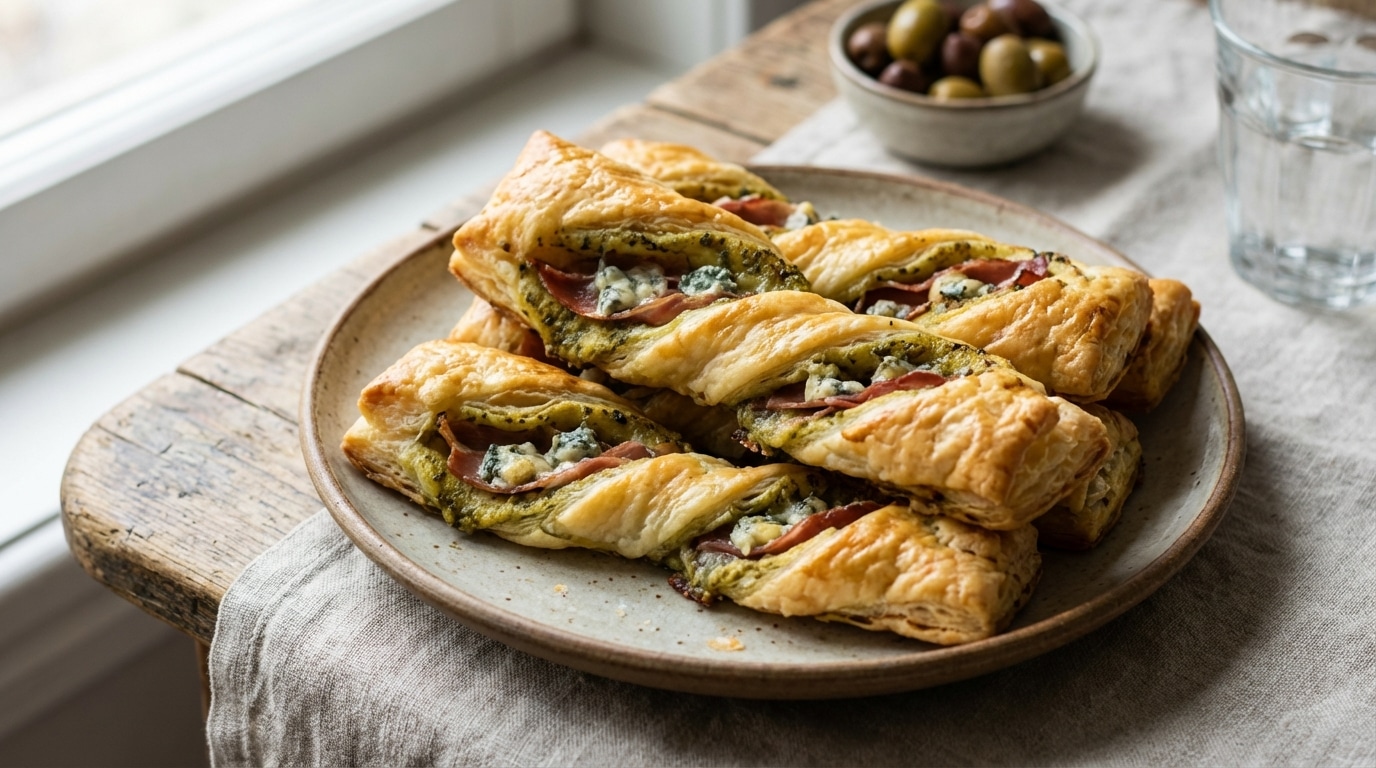 Côté accords, le pesto-parmesan adore une boisson bien fraîche et un dip citronné type fromage blanc aux herbes. Le jambon-comté s’entend avec une bière blonde légère ou un verre de blanc sec, et une moutarde douce en accompagnement. Le roquefort-noix se marie avec un rouge fruité ou un blanc moelleux, et une cuillère de miel à côté pour le contraste.