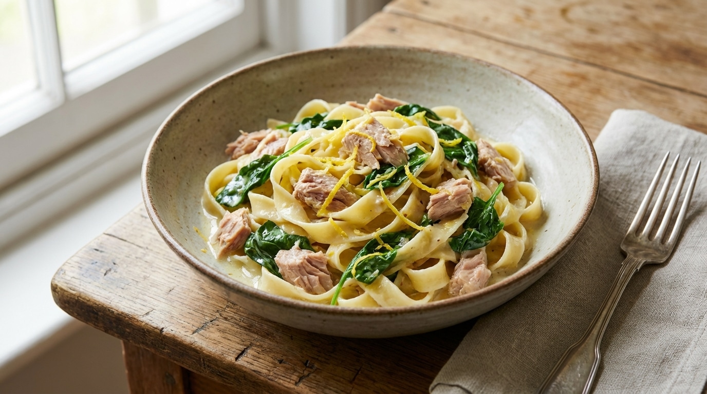 En ces douces soirées de printemps où la lumière s’attarde joliment, l’envie de s’affairer frénétiquement derrière les fourneaux s’évanouit, laissant place à une faim immédiate de fraîcheur et de réconfort ensoleillé. L’air tiède invite irrésistiblement à savourer des repas colorés et joyeux, portés par des senteurs franches qui réveillent le palais engourdi. Imaginez une assiette opulente et fumante où la générosité lactée se frotte au caractère iodé authentique, le tout magnifiquement bousculé par une vivacité inattendue. Ce plat rassemble incroyablement la profondeur onctueuse d’une sauce veloutée et la belle verdeur de jeunes pousses délicates. Cette composition spontanée célèbre le pur plaisir instinctif de plonger la fourchette dans un enchevêtrement parfait, follement gourmand, pensé uniquement pour combler les sens et exalter les papilles dès la première bouchée.